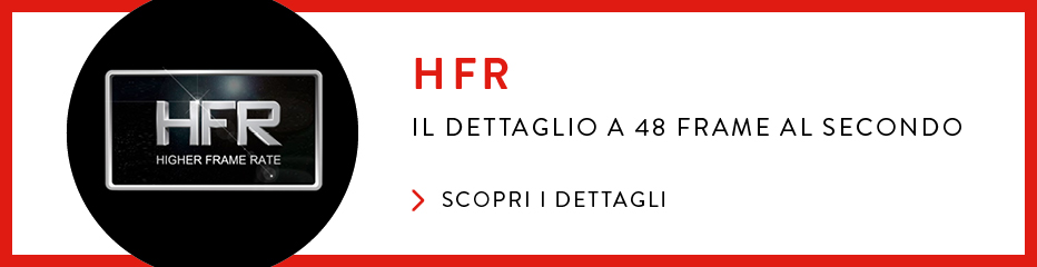 Questa tecnologia rivoluzionaria è disponibile nei nostri cinema e garantisce un'esperienza visiva senza paragoni nei film appositamente realizzati in HFR. Preparatevi a momenti davvero speciali – ogni volta che l'HFR entra in scena!