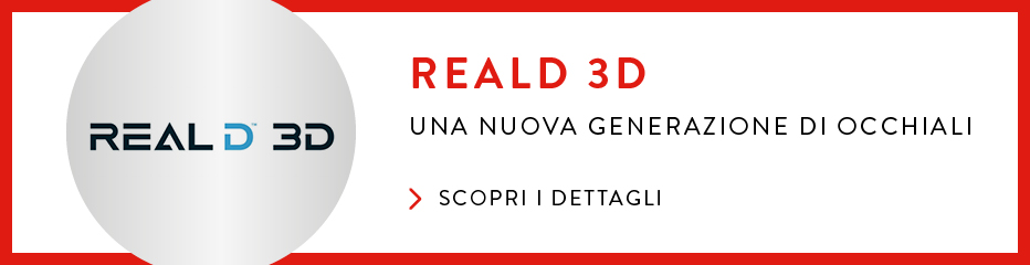 RealD 3D è la nuova generazione dell'intrattenimento, con immagini nitide e brillanti, così realistiche da farti sentire come se avessi fatto un passo dentro al film.